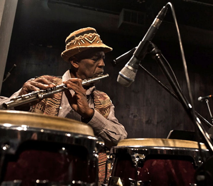After a dream from Dwight Trible, he contacted each of us to describe what came to him: a sextet called Cosmic Vibrations consisting of - John B Williams on upright bass/vocals/kalimba, Derf Reklaw on congas/bongos/african percussion/flutes/over-tone vocalizing, Christopher Garcia on tabla/kanjira/gongs/percussion/meso-american drums, Pablo Calogero on bass clarinet/woodwinds/exotic flutes/percussion, Breeze Smith on drum set/percussion/electronic live looping and Dwight on vocals/kalimba.